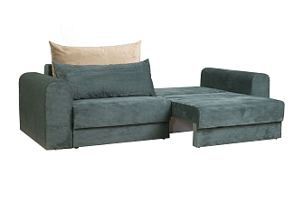 Заказала этот диван в изумрудном цвете. Понравилась его форма – строгая и в то же время необычная. Диван не громоздкий, занимает немного места как в сложенном, так и в разложенном положении. Раскладывается легко. Ткань плотная, качественная и приятная на ощупь.