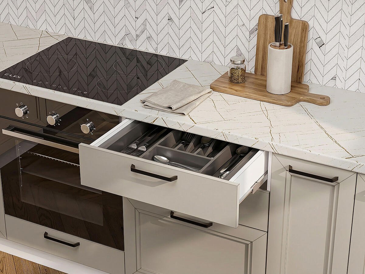 На выбор покупателя влияет конфигурация помещения, целевое назначение, общая площадь. Производитель предусмотрел вариант посекционного приобретения изделий с разными показателями глубины (диапазон 350 — 480 мм).