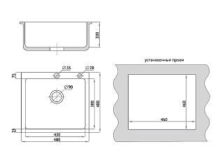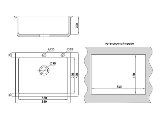 Мойка врезная 764218/0,6 1Ч1К (правая)